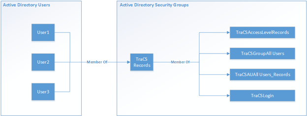 Existing AD Users (or existing AD groups) will be a member of one of these AD Security Groups: