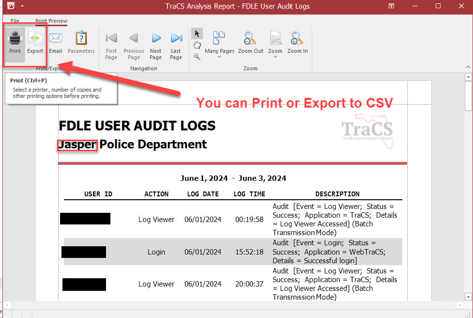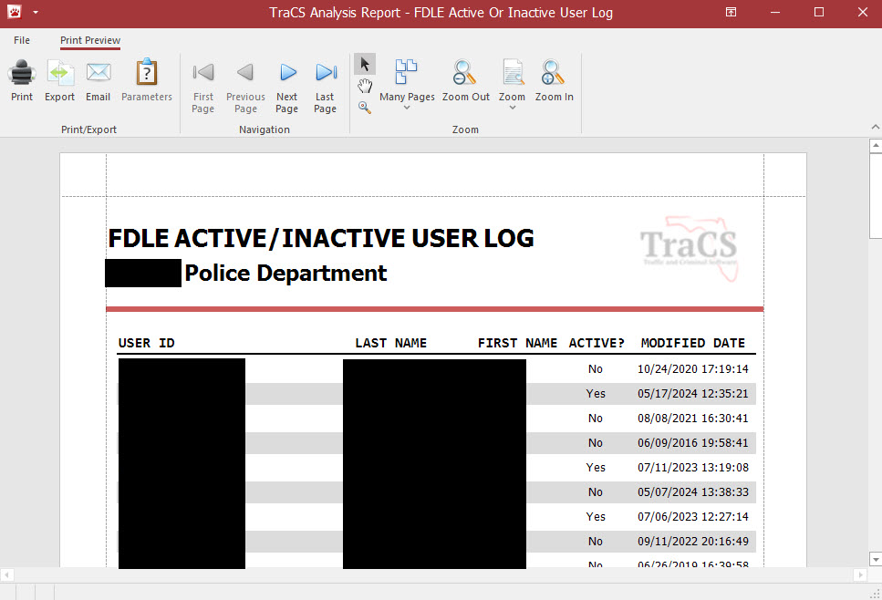 During your FDLE audit, the auditor will ask you to provide information on individual login activity for users within a date range, including failed login attempts as well as a list of both active and inactive users for the agency.