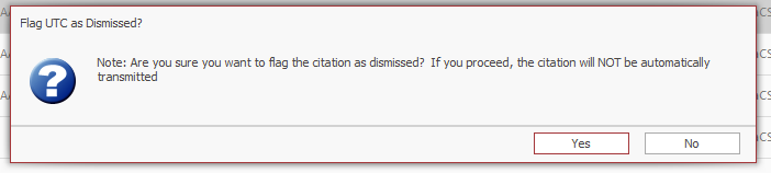 As of TraCS Version 15.0.12, Uniform Traffic Citations (UTC) may be marked as Dismissed when an agency receives notification from the Clerk of Courts (COC) or State Attorney's Office (SAO) that they have dismissed a citation or have filed a nolle prosequi.