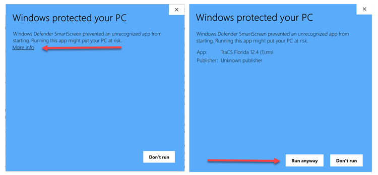Launch the installer. If you get a popup "Windows protected your PC" popup, press More Info. On the next popup, press Run Anyway.