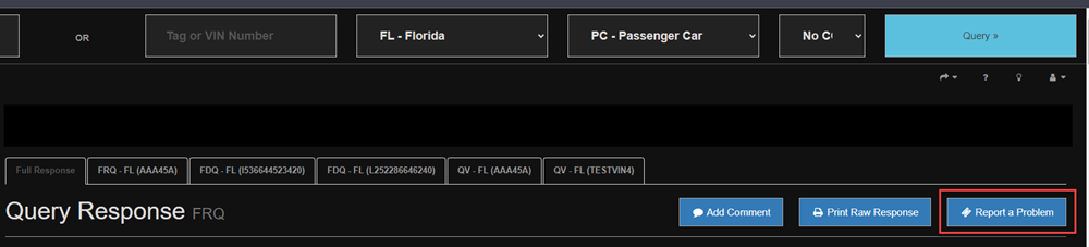 If this occurs with an ELVIS import, whether it's Florida vehicle or out of state, press the blue Report a Problem button to the right of the query response in ELVIS.
