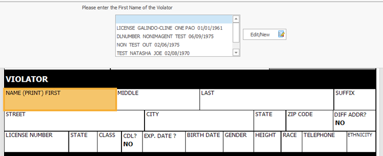 If you exit out of a form and then need to go back and change a person or vehicle, you need to clear out the existing information and then press the NCIC button and the list will appear. To clear out the information, go to the Last Name field (person) or Year field (Vehicle) and press Clear at the upper right.