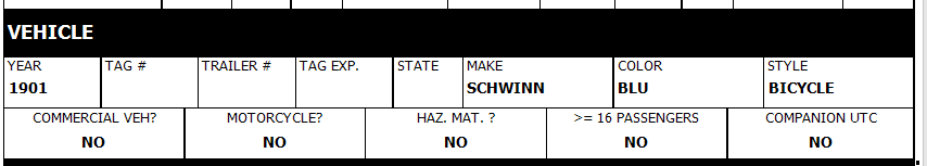 When issuing a moving violation to a bicyclist, fill out the vehicle section as follows: