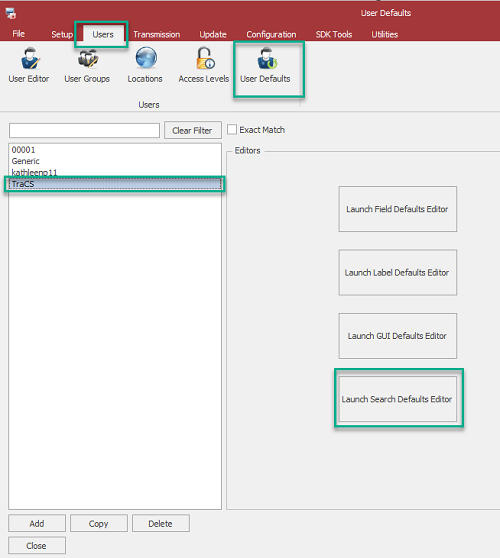 Highlight the User Defaults ID on the list and press the Launch Search Defaults Editor button.