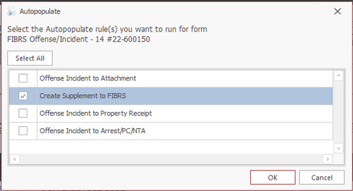 If there is more than one charge, person, or vehicle on the report you are supplementing, you will be prompted to choose one to copy over to supplement.