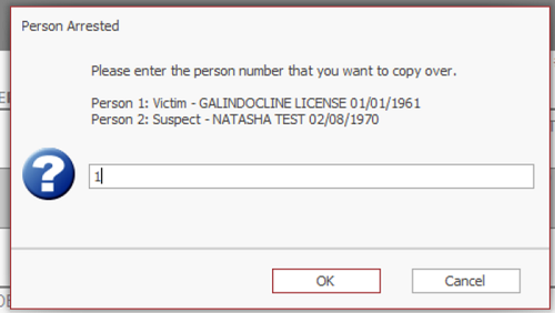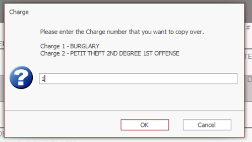On each prompt that comes up, type the number of the charge, person, and/or vehicle that you wish to copy and press OK.