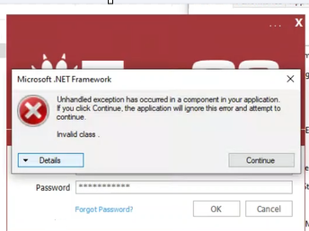 If you get a Microsoft .NET Framework error stating "Invalid Class" when attempting to log in, have IT complete the steps below to resolve the issue.