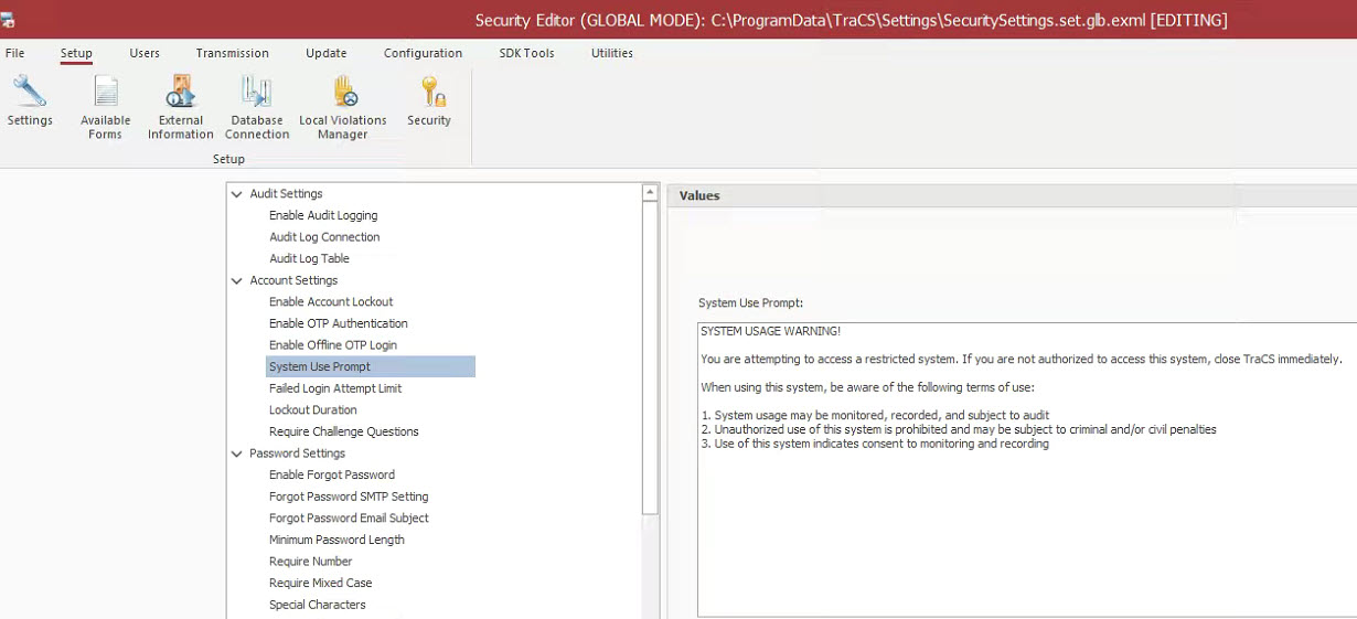 Use Secure Password (False) Use Password Expiration (False) Use OTP Authentication (True)