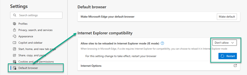 If your default browser is already set to Edge but the tool is launching in IE, complete the steps below.