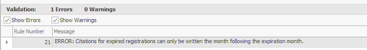 This verbiage was added to the statute in 2016. If you attempt to issue a citation using an expiration date within that month that is in the current year, you will not be able to validate.